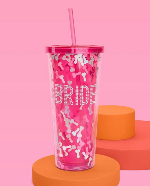 Pink Confetti Bride Rhinestone Plastic Tumbler - 24 oz |nt