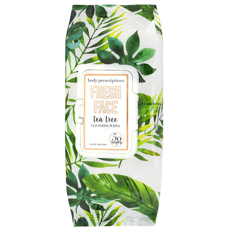 Body Prescriptions Tea Tree Facial Wipes, Detoxifying + Moisturizing, Deep Cleansing Face Towelettes, Refreshing + Nourishing, Gentle Cleansing