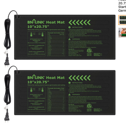 BN-LINK Durable Seedling Heat Mat Warm Hydroponic Heating Pad Waterproof 10" x 20.75" - 2 Pack for Seed Starting Greenhouse and Germination & Tissue Cukture