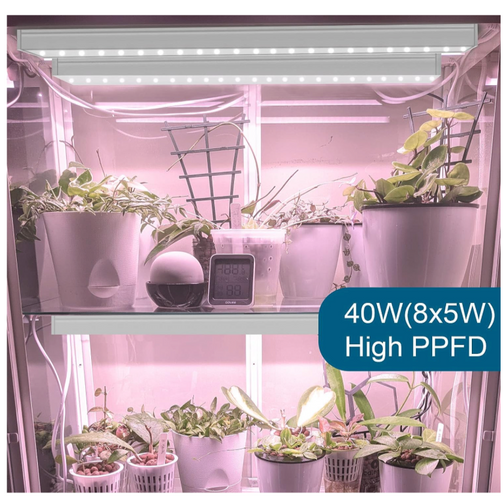 Bull Spectrum Sunlight, 1ft Plant Light for Indoor Growing, LED Grow Light Bulbs, T5 Grow Light Strip, Plug and Play, Pinkish White, 8-Pack